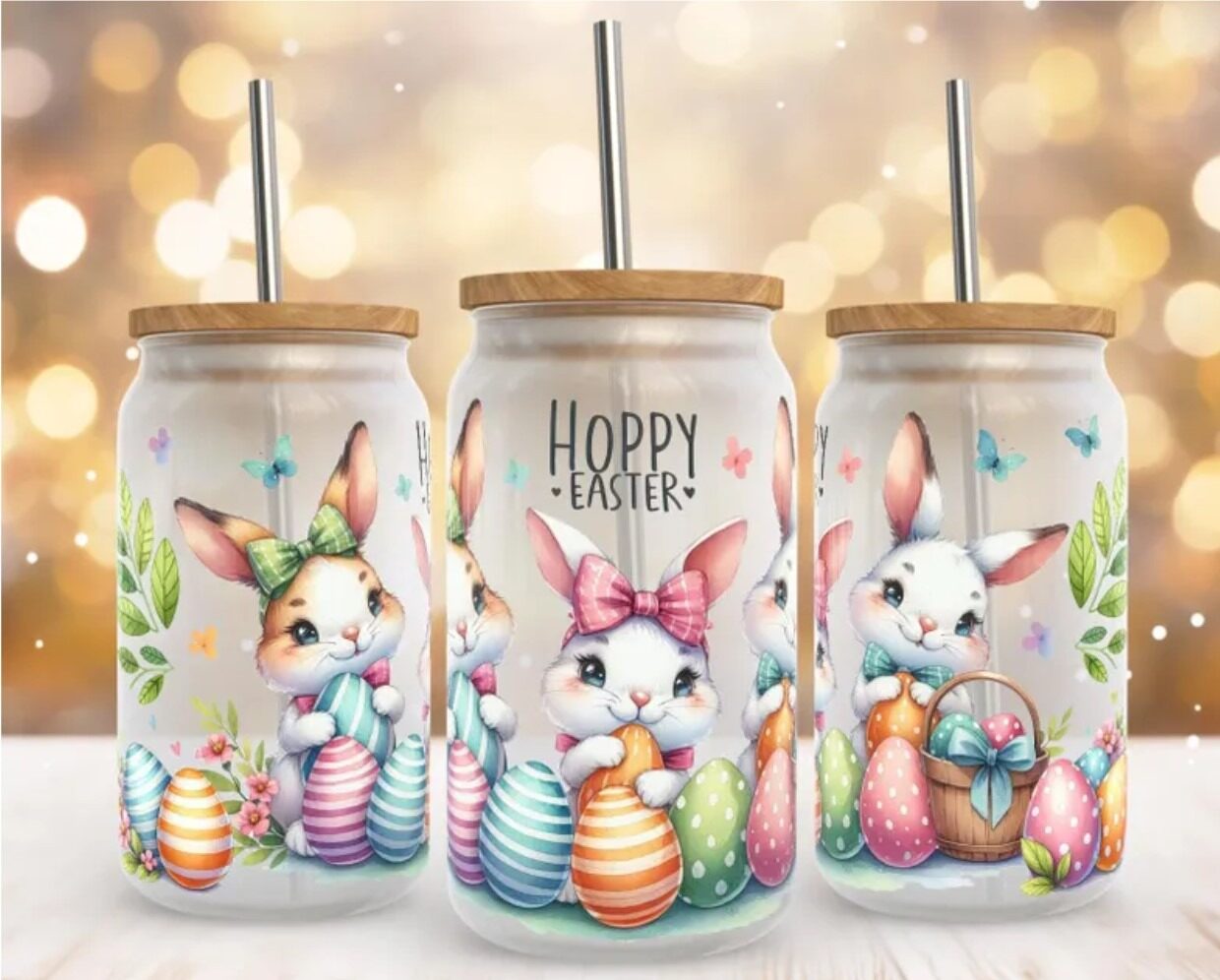 Hoppy Easter with bunny designs 14oz Glass Tumbler