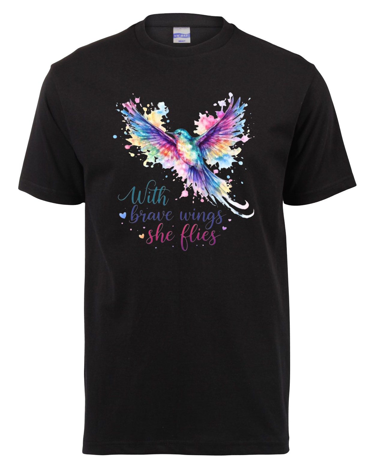 165g Black T-shirt with With Brave Wings She Flies design printed on front